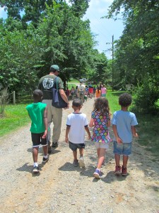 Mark leading a tour group of 4-6 year olds.